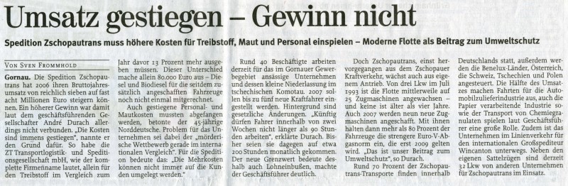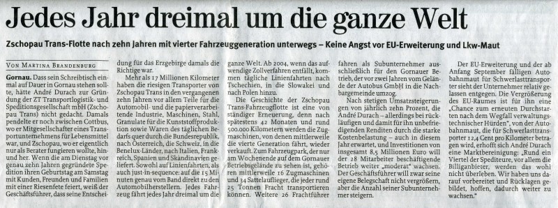 Gründung der ZT Transportlogistik- und Speditionsgesellschaft mbH Zschopau durch die Gesellschafter/in B.Görner, B.Rühlig, H.Schönherr, A.Durach, T.Rückoldt, T. Schaarschmidt